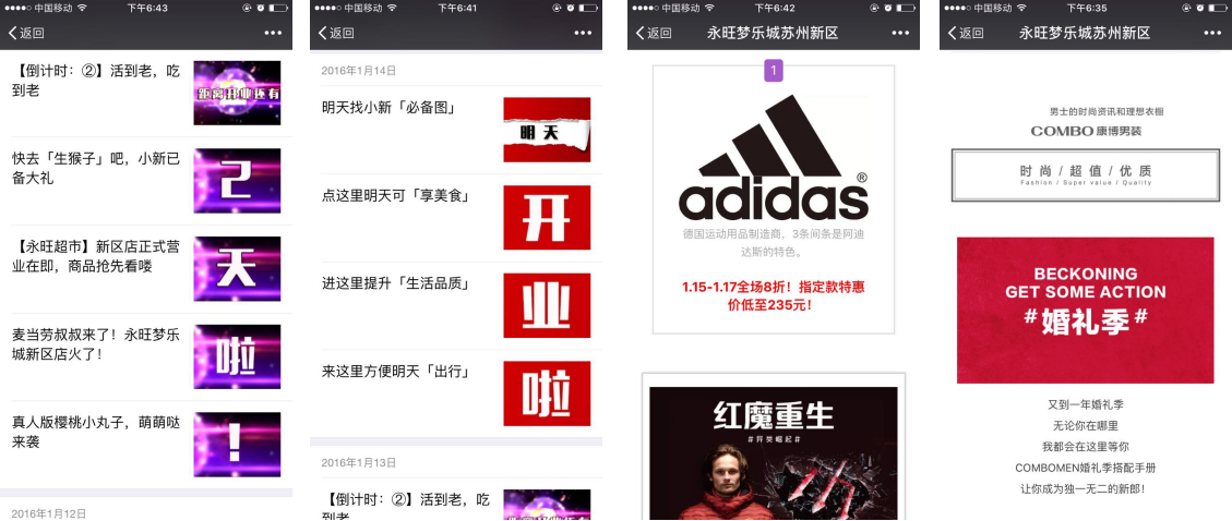 永旺夢(mèng)樂城(中國),由日本永旺夢(mèng)樂城株式會(huì)社獨(dú)資投資,以大規(guī)模占地面積開發(fā)購物中心和租賃商業(yè)設(shè)施為主營業(yè)務(wù)的獨(dú)資企業(yè),已于2008年3月14日在北京正式成立。 自合作以來,微信后臺(tái)粉絲已超20000,分別策劃了開業(yè)活動(dòng)、太太顧問團(tuán)招募活動(dòng)、美食購物嘉年華活動(dòng)等,日常圖文以推送商戶信息為主。